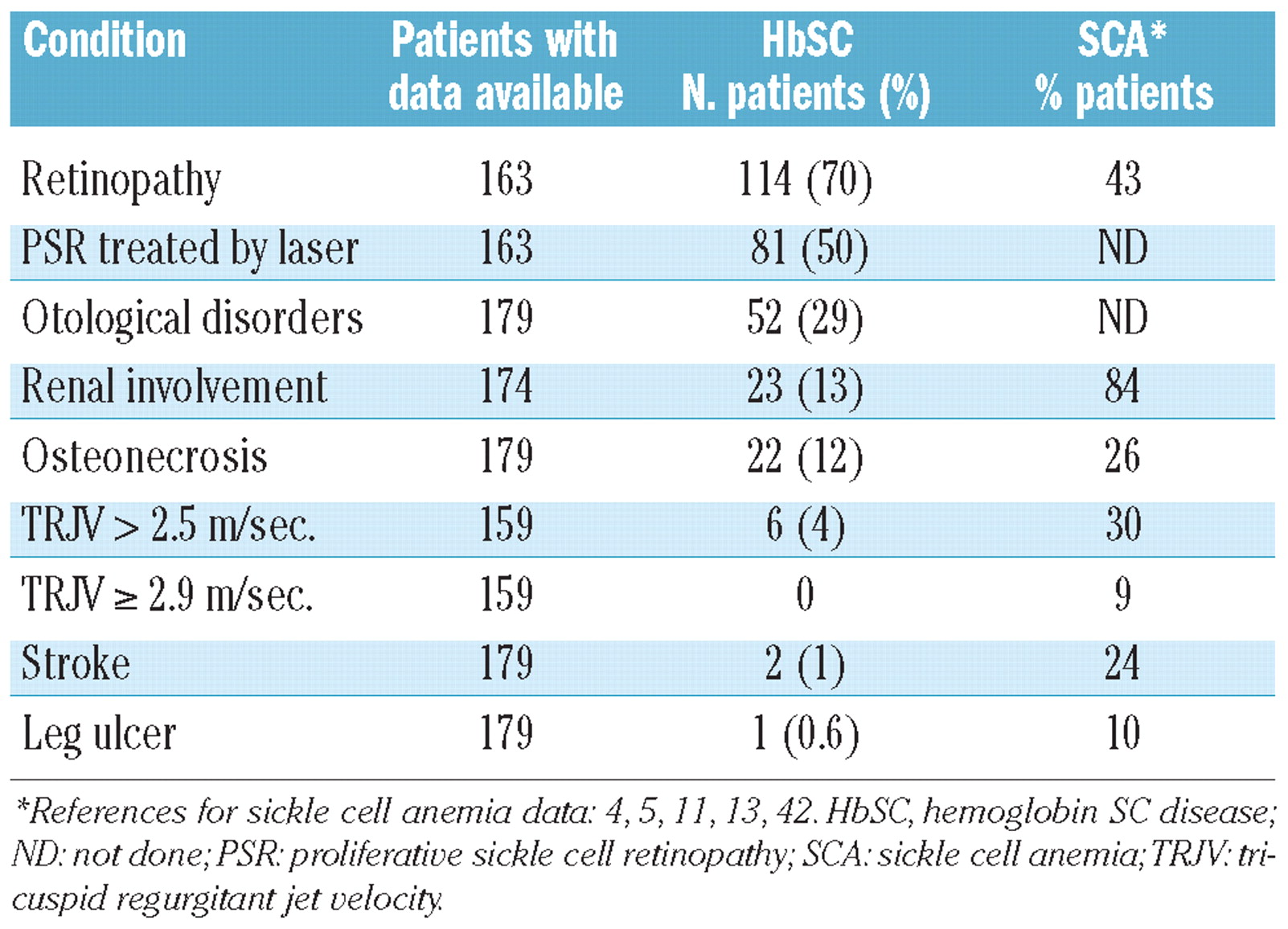 Hemoglobin Sc Disease Complications A Clinical Study Of 179 Cases Haematologica