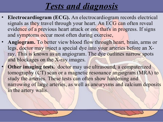 As a result the vessels become non. Diagnostic Tests for Atherosclerosis Vital signs decreased blood pressure on the affected limb. Whooshing sound or bruit over the arteries upon auscultation Blood tests to measure cholesterol levels by total lipid profile fasting for 10 to 12 hours lipoprotein blood test non-fasting and glucose testing.