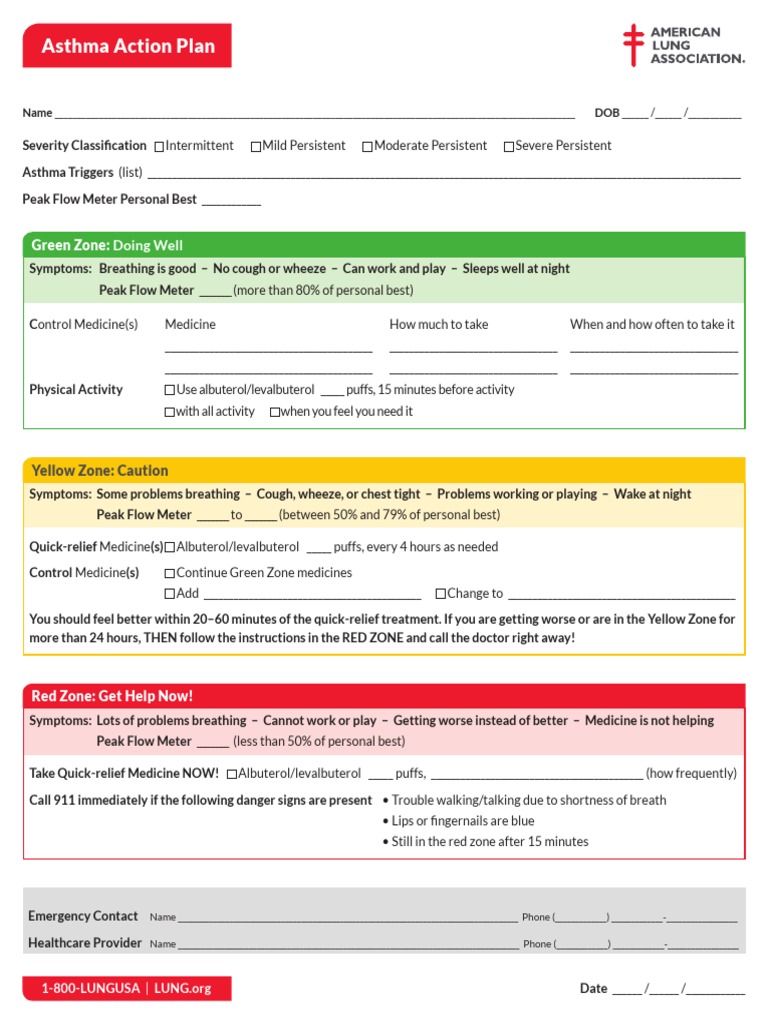 If you do not have a written Asthma Action Plan take the form below to your doctor and have them fill it out for you. The Asthma Action Plan is made up of three color-coded zones The zones. The American Lung Association is a widely-recognized authority for asthma health professionals seeking the latest research news resources and data.